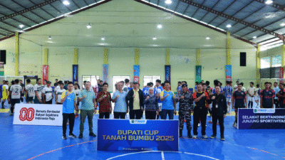 Tanah Bumbu, BakulaNews – Dalam rangka memeriahkan Hari Ulang Tahun Kemerdekaan Republik Indonesia ke-80, Pemerintah Kabupaten Tanah Bumbu menggelar Turnamen Futsal Bupati Cup 2025. Sebanyak 54 tim dari berbagai kecamatan, instansi, hingga komunitas futsal turut ambil bagian, menunjukkan antusiasme tinggi masyarakat terhadap olahraga ini.