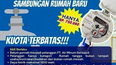 Program istimewa ini berlaku hingga 15 November 2025 dengan kuota terbatas. Masyarakat yang belum menjadi pelanggan dapat memanfaatkan kesempatan langka ini untuk mendapatkan sambungan air bersih rumah tangga dengan harga yang lebih terjangkau.