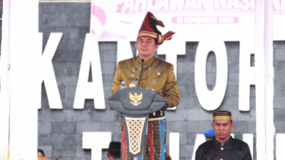 Tanah Bumbu, BakulaNews – Suasana haru menyelimuti upacara peringatan Hari Pahlawan Tahun 2025 yang digelar Pemerintah Kabupaten Tanah Bumbu di lapangan Kantor Bupati Batulicin, Senin (10/11/2025). Para peserta, pejabat, dan tamu undangan tampak mengenakan pakaian adat dari berbagai daerah di Indonesia, menambah khidmat peringatan perjuangan para pahlawan bangsa.