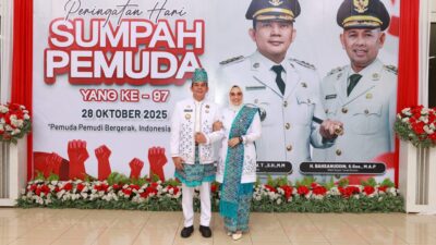 Tanah Bumbu, BakulaNews – Ketua Tim Penggerak PKK Tanah Bumbu, Andi Irmayani Rudi Latif, menghadiri upacara peringatan Hari Sumpah Pemuda ke-97 Tahun 2025 yang digelar di halaman Kantor Bupati Tanah Bumbu, Selasa (28/10/2025).